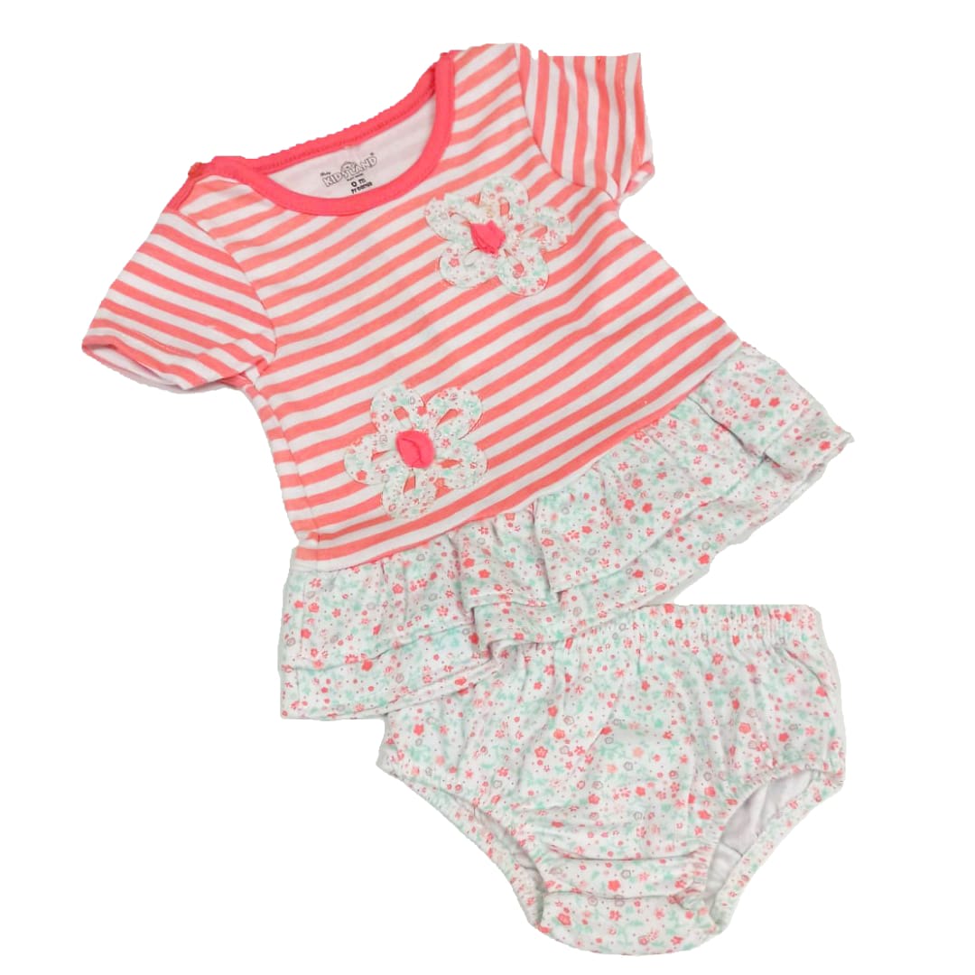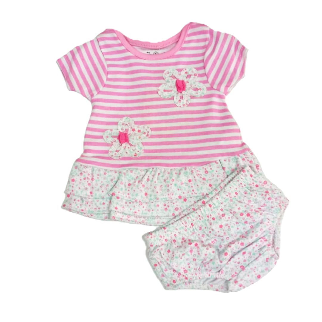 Conjunto algodón nena RN rayas y flores