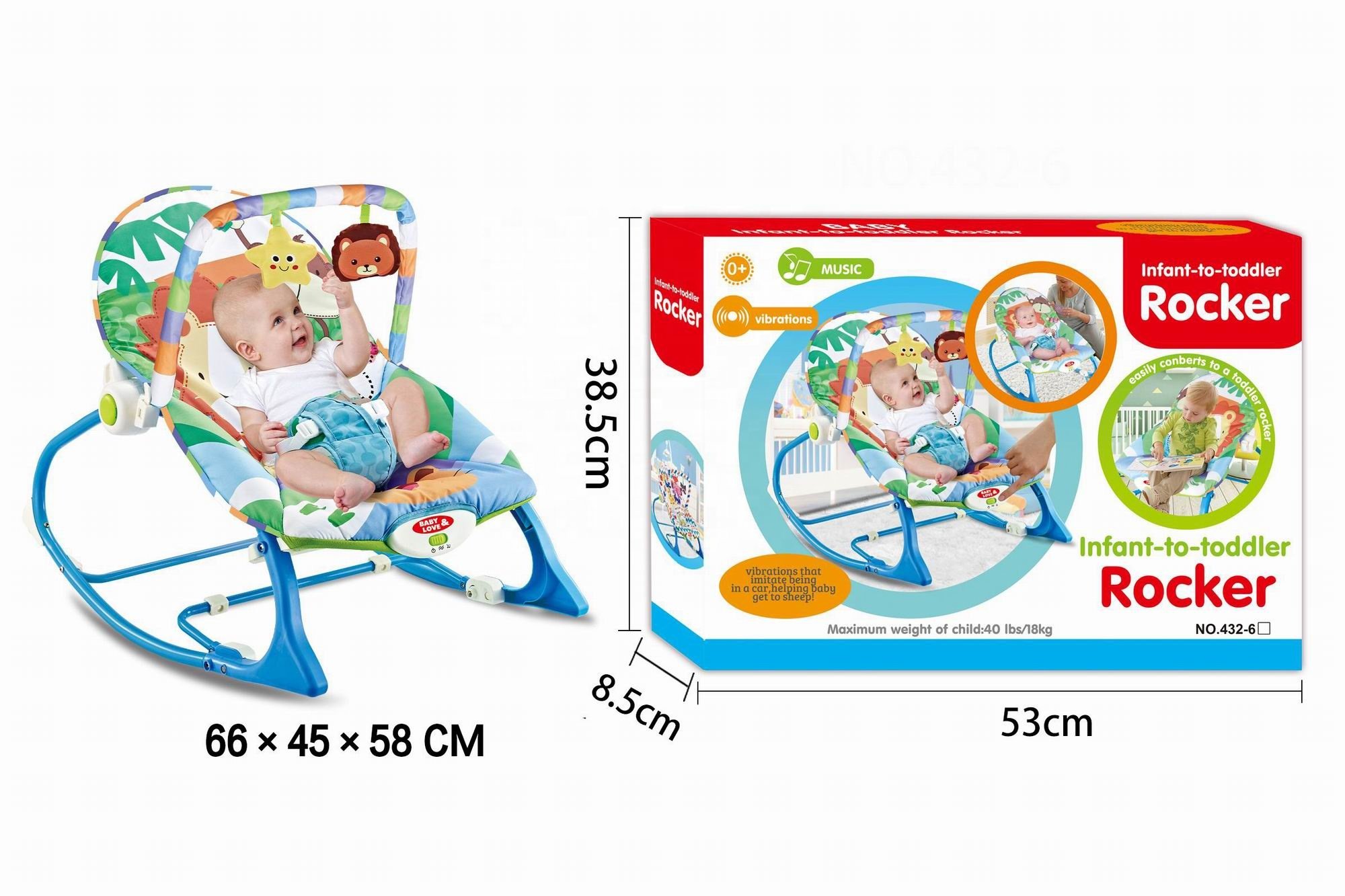 Silla mecedora para el bebé, conforme el pequeño crece, puedes convertirla fácilmente en un asiento con barra de juguetes removible y mientras tu niño continúa creciendo se convierte en mecedora para niños de hasta 18 kg. Para calmar, utiliza la música o vibraciones. Funciona con batería tipo D (no incluida). Viene con cinturón de seguridad de tres puntos para evitar que el bebé se resbale de la silla, proporcionando protección de seguridad. El soporte del respaldo es más adecuado para bebés recién nacidos, diseño ergonómico. Es totalmente portátil. La almohadilla del asiento se puede lavar en máquina.