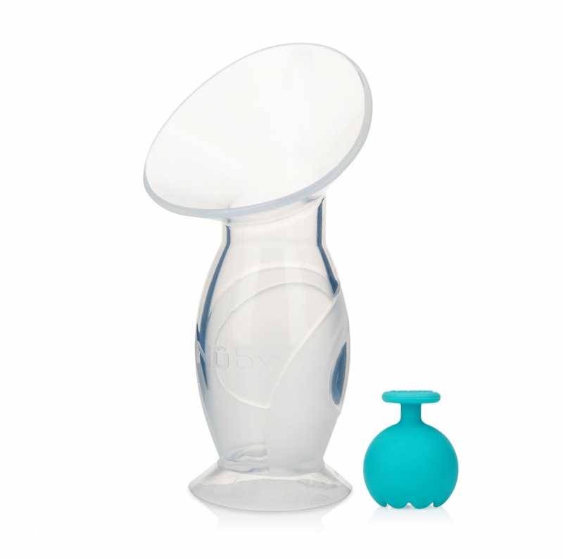 Extractor de leche y colector. Se utiliza tanto para sacar la leche materna como para recolectar la leche de una mama mientras el bebe succiona de la otra.