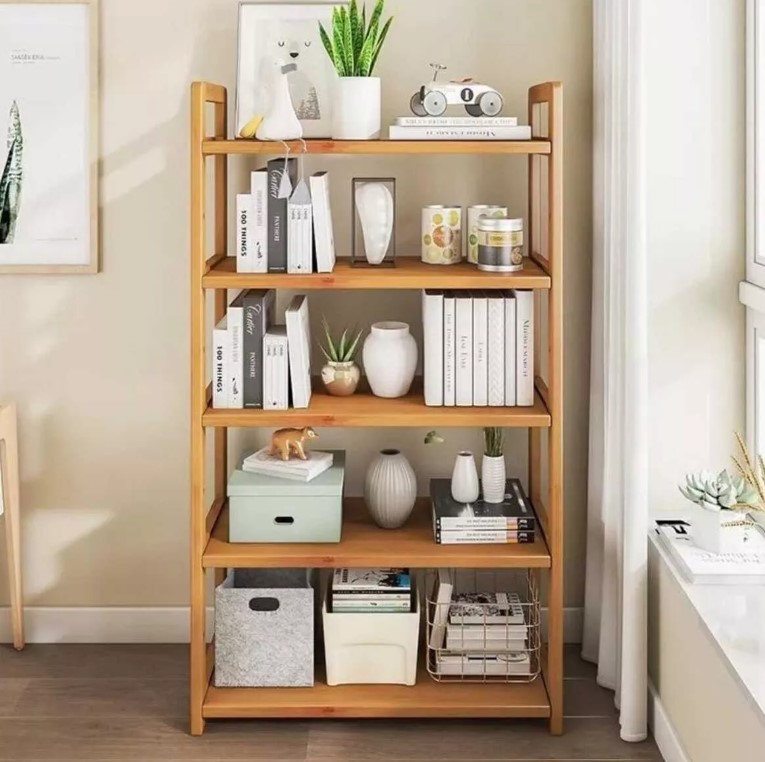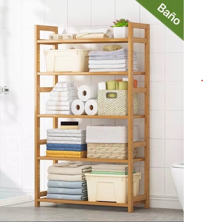 Estantería de bambú de 5 estantes, ideal para organizar y decorar cualquier ambiente del hogar.