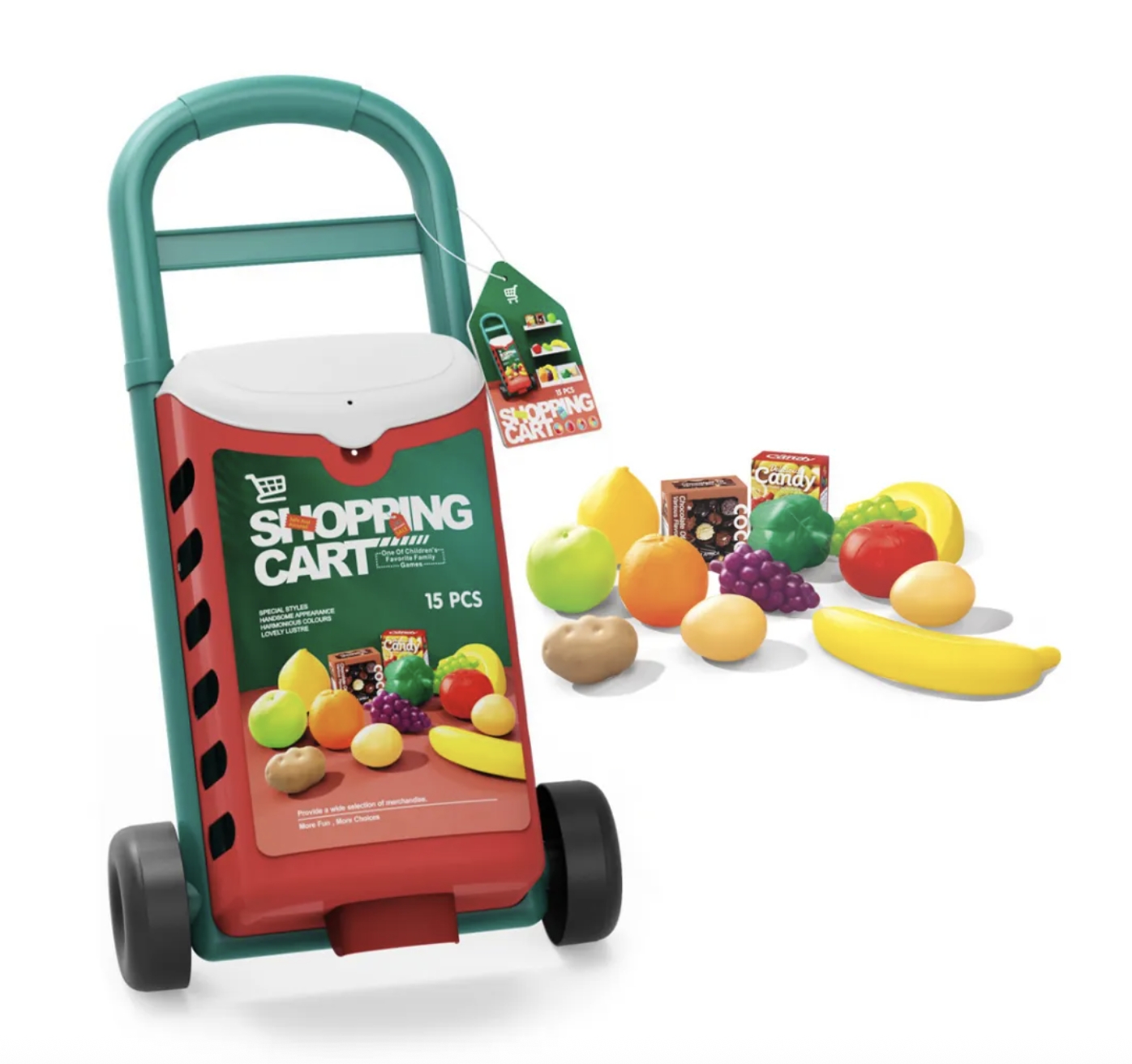 Este encantador carrito de feria mide 56.3 x 30.2 cm., tamaño perfecto para niños pequeños.