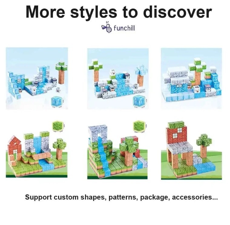 Este nuevo juego de bloques magnéticos incluye agua que fluye, castillo, flores, hierba, árboles y un molino de viento. Deja volar la imaginación de los niños con nuestro juego magnético de extremo abierto Con una amplia gama de patrones, nuestros bloques magnéticos, despiertan interés y fomentan la investigación.
