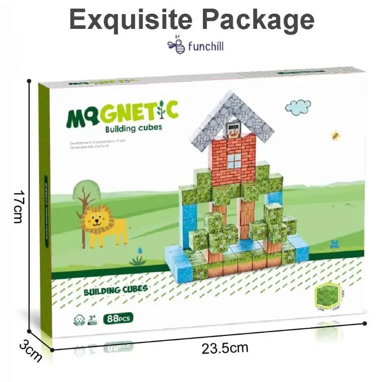 Los bloques magnéticos abren un bloque de posibilidades, 88 bloques magnéticos son suficientes para construir muchas escenas diferentes, desde construcciones simples hasta desafiantes.