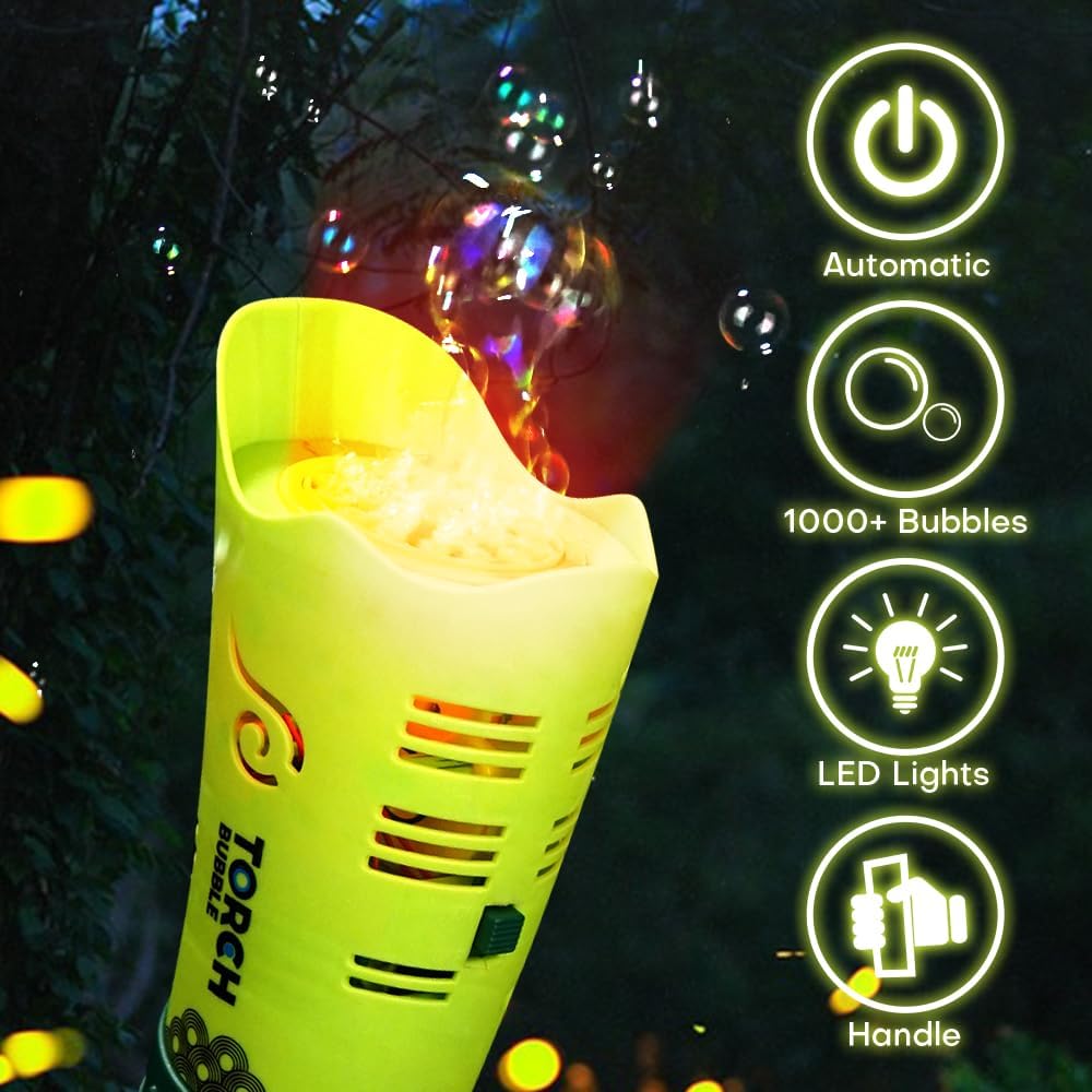 Con 21 agujeros para hacer burbujas y luces integradas, esta máquina de burbujas automática crea un espectáculo de burbujas fascinante. Los encantadores efectos de luz le dan un toque mágico, convirtiéndola en un juguete extraordinario que cautivará a cualquier niño.