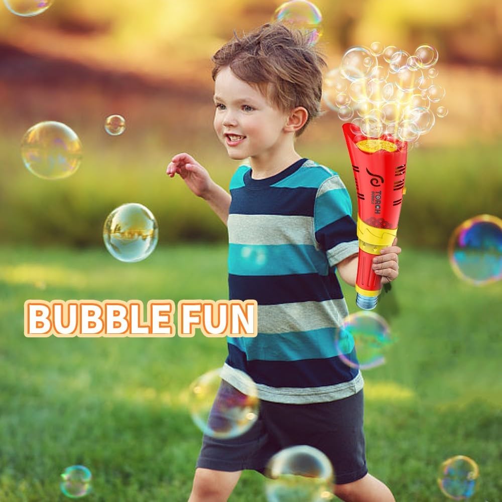 Simplemente inserta las pilas, conecta la botella de solución de burbujas y ¡listo! Su diseño intuitivo garantiza que los niños disfruten de infinitas burbujas sin complicaciones.