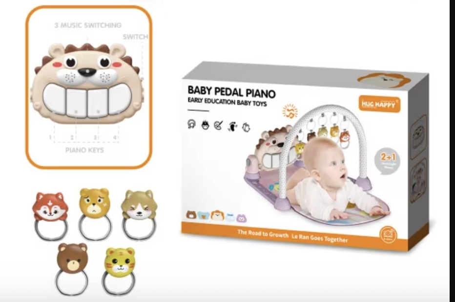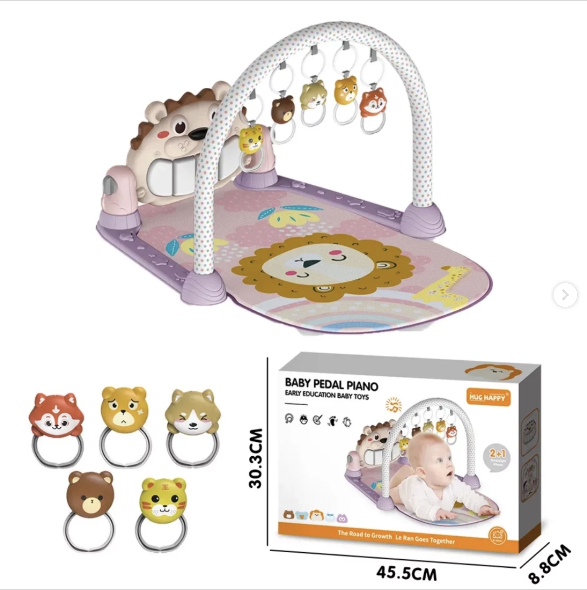 Este gimnasio incluye un piano de juguete que se ilumina al tocarlo, ¡permitiendo a tu hijo crear música con los pies y las manos! Ya sea acostado o sentado, este piano promete convertir cada momento en una sinfonía de risas y descubrimientos, con agradables sonidos que no dañan la audición del bebé y función de encendido/apagado.