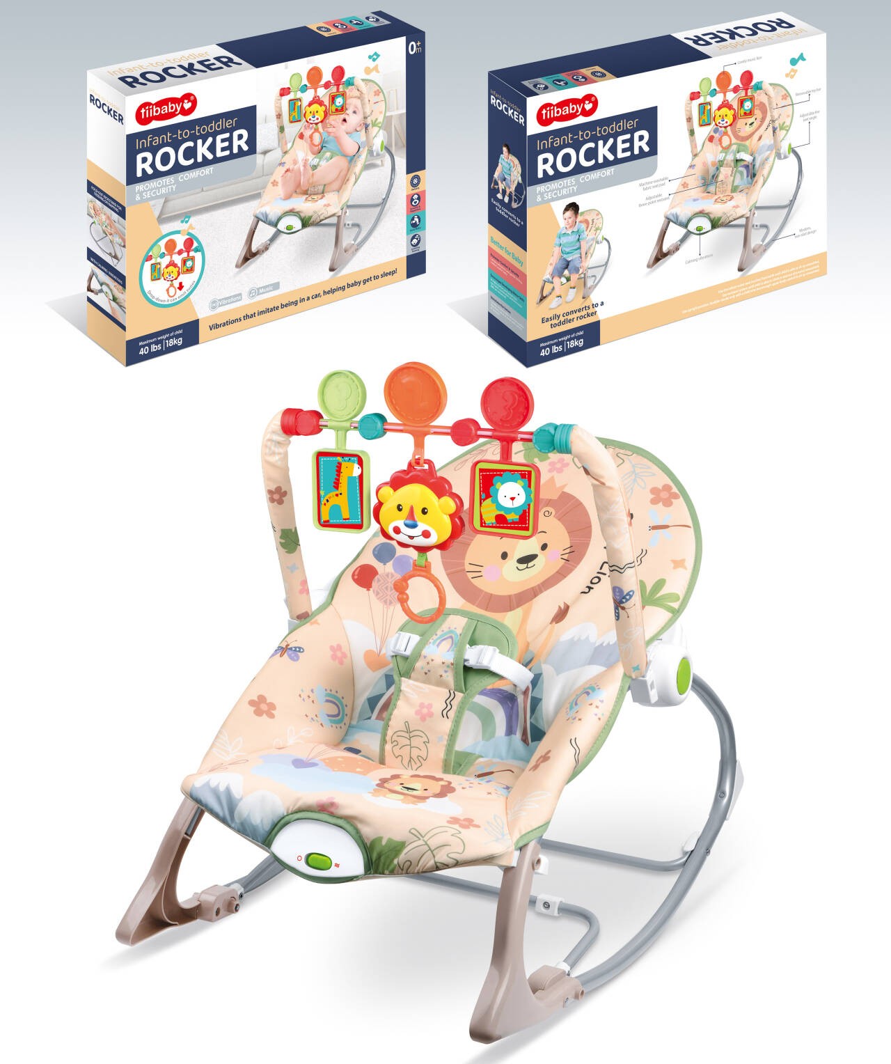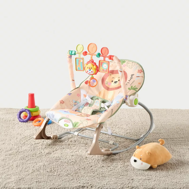 Silla mecedora para el bebé, conforme el pequeño crece, puedes convertirla fácilmente en un asiento con barra de juguetes removible y mientras tu niño continúa creciendo se convierte en mecedora para niños de hasta 18 kg.