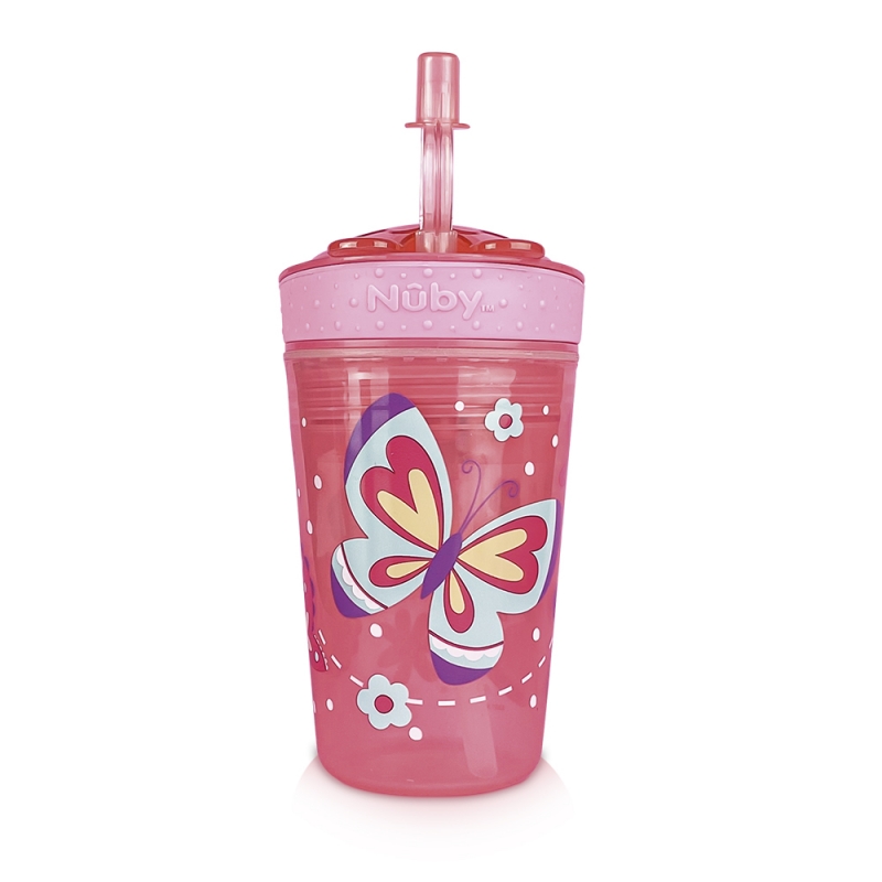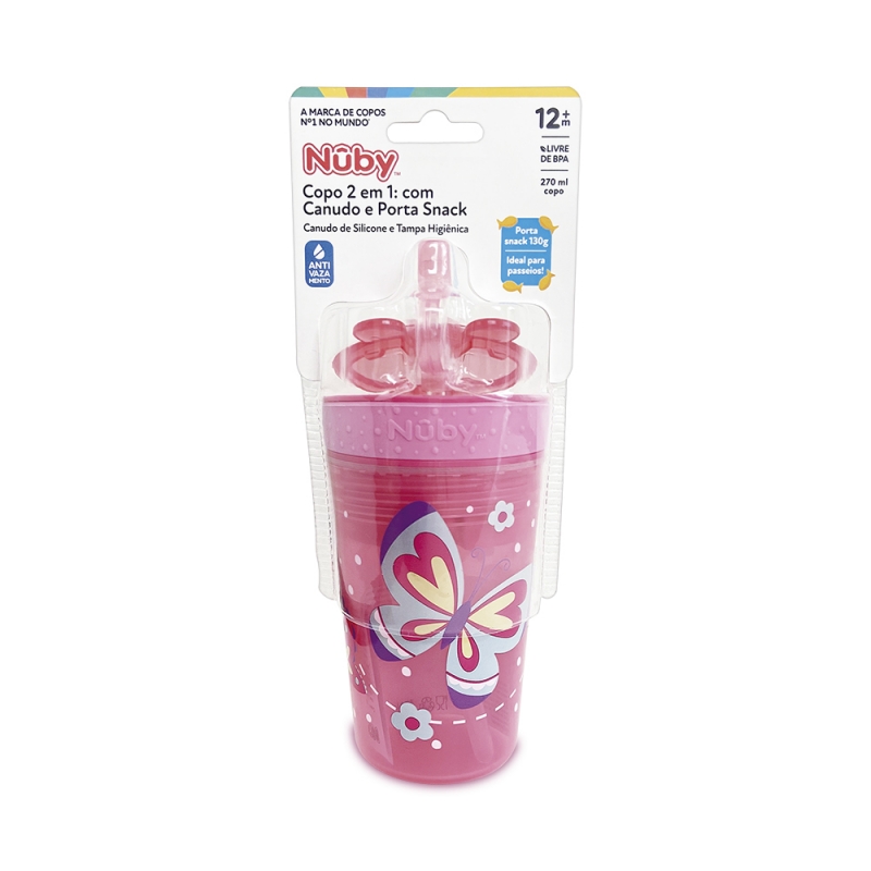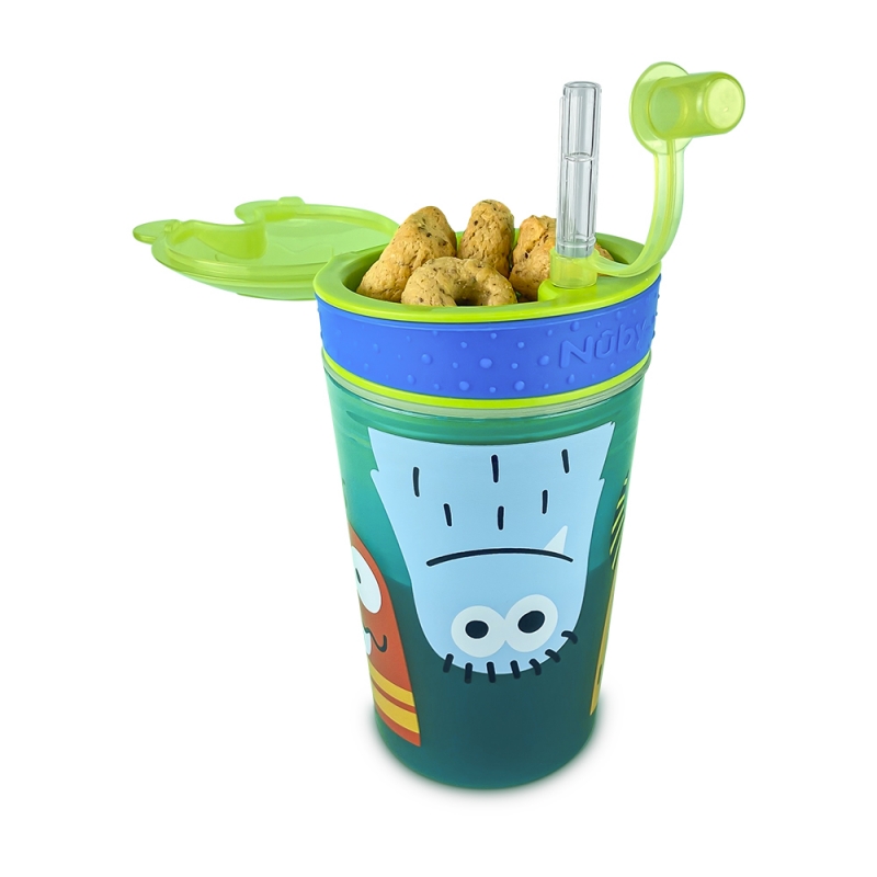 Snacks y bebidas, todo en un mismo lugar con el Vaso Nûby 2 en 1: con Pajita y Recipiente para Snacks.