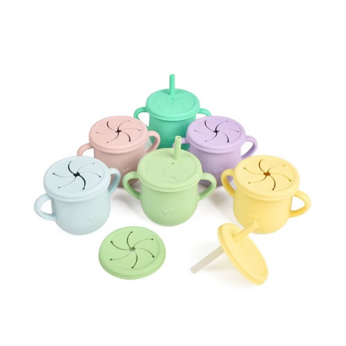 Práctico y funcional, este vaso está diseñado para que los más chicos puedan tomar agua y comer snacks de forma cómoda y sin derrames.