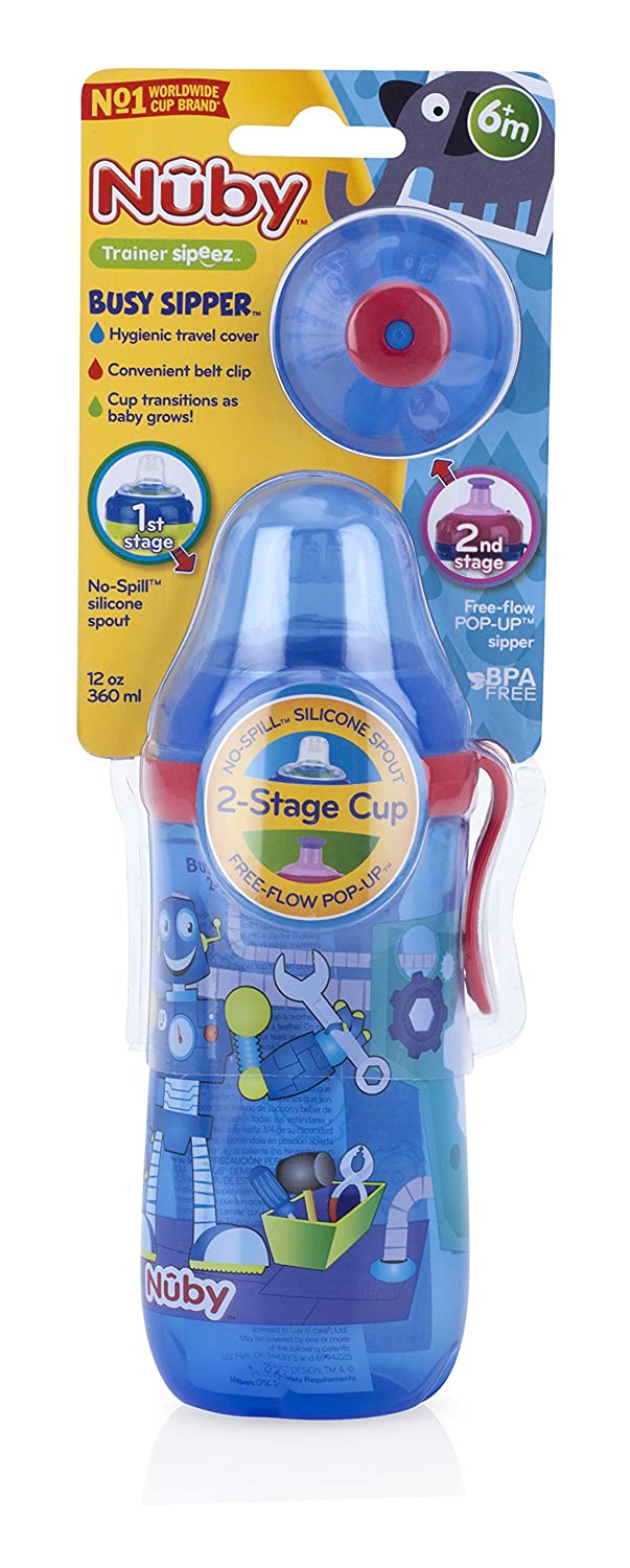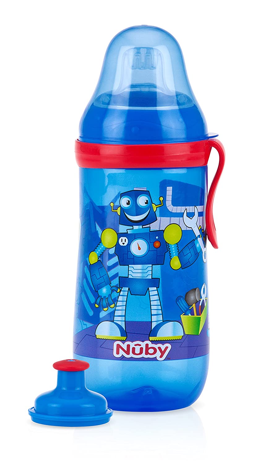 Vaso anti derrame de 360ml -Libre de BPA -Dos boquillas para diferentes etapas: -Boquilla de silicón suave No-Spill™ -Fluido libre del líquido con boquilla Pop-Up Sipper. -Viene en colores brillantes y llamativos.