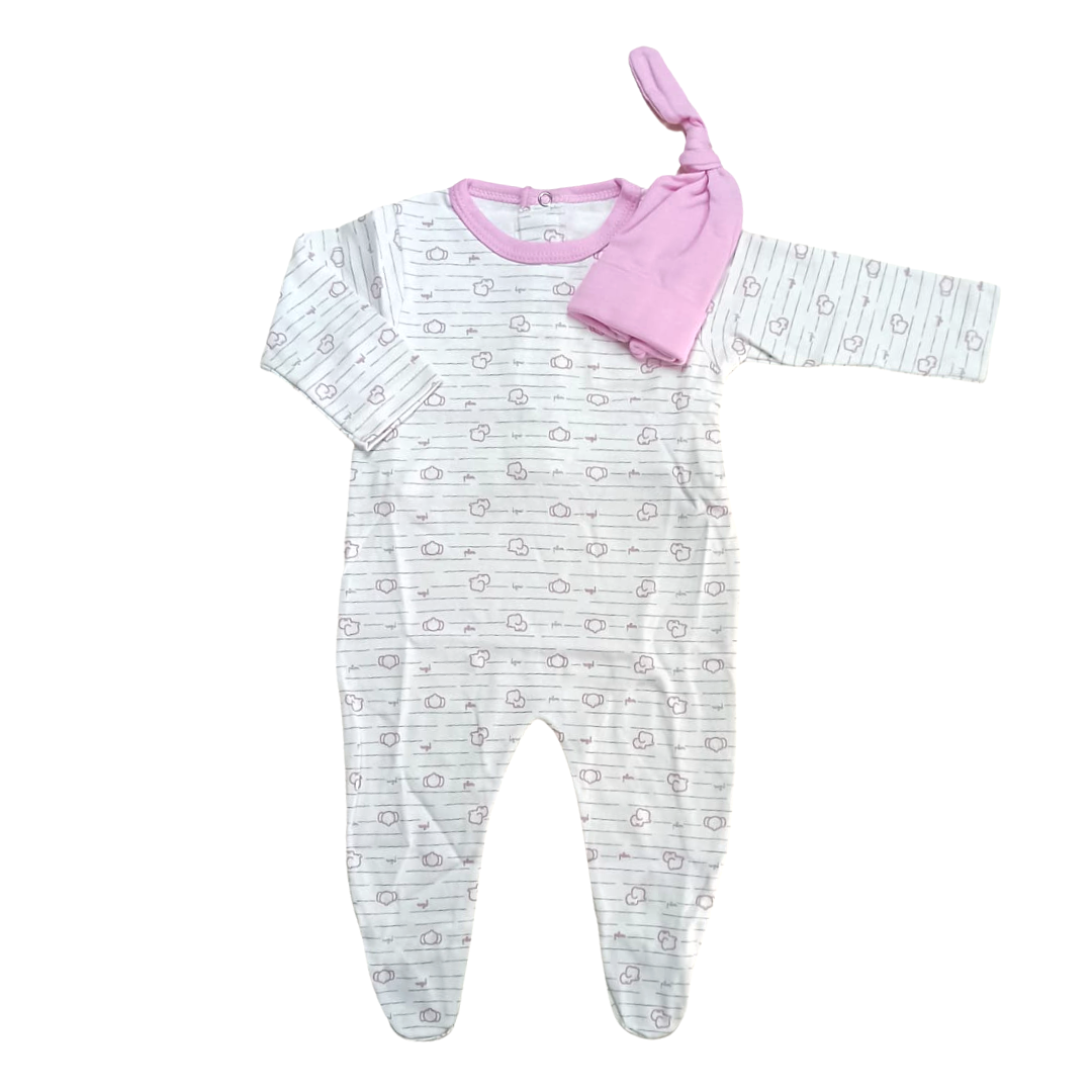 Set enterito pañalero (apertura trasera) y gorrito