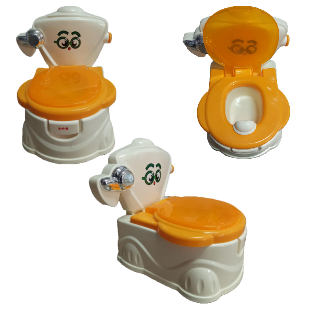 Cuenta con ojitos en la cisterna que le dan un toque simpático y amigable, además de una palanca lateral que imita la descarga real, incentivando el juego y el aprendizaje.