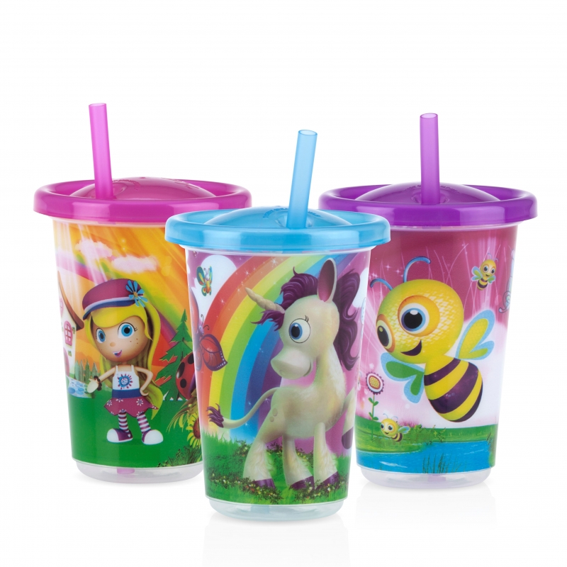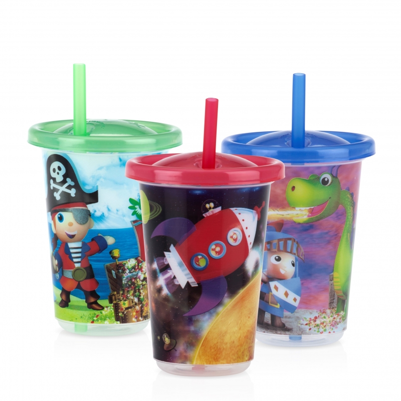 Set Nuby 3 Vasos Decorados con Pajita 300 ml