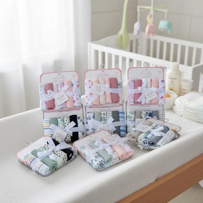 Mantén a tu bebé seco y cómodo todo el día con este set de 6 babitas de tela tipo toalla.