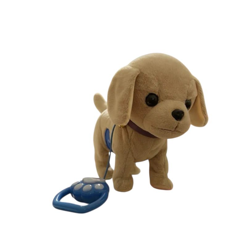 Perro peluche interactico con correa- Ladra- camina-mueve la cola - Beige