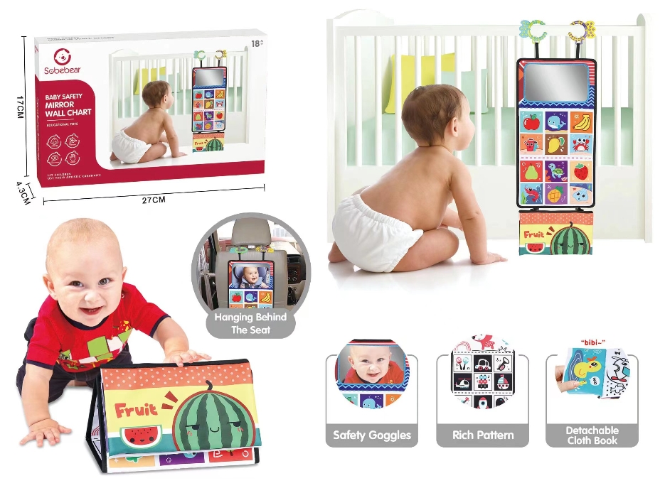Lado 2: Colores intensos y un enorme espejo seguro para bebés que ayuda al bebé a aprender la autoconciencia, la observación visual y a desarrollar habilidades de comunicación.