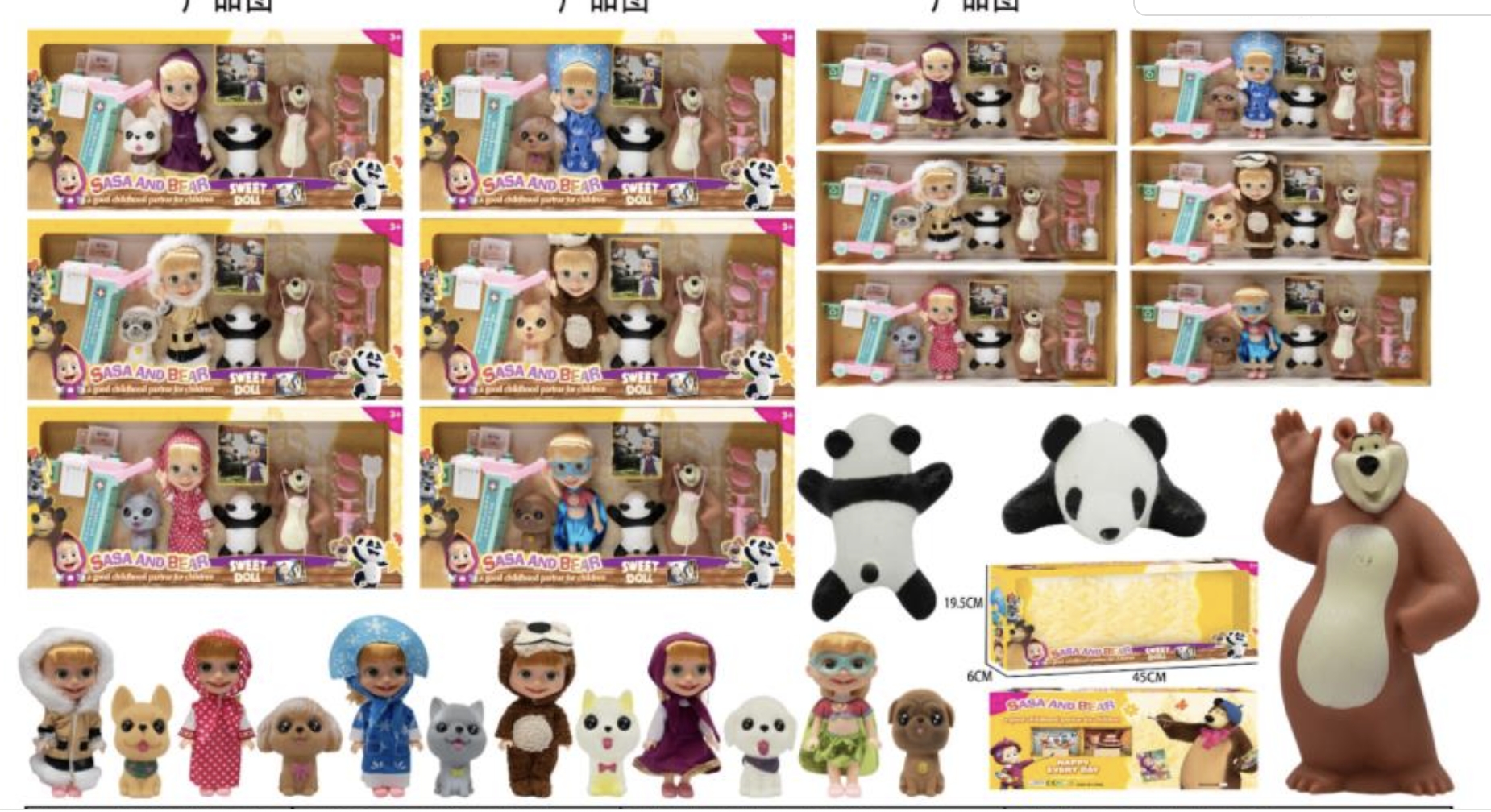 Los muñecos de Masha Y El Oso, junto a sus amigos y muchos accesorios mas, son el juguete perfecto para inspirar la imaginación de los más pequeños.