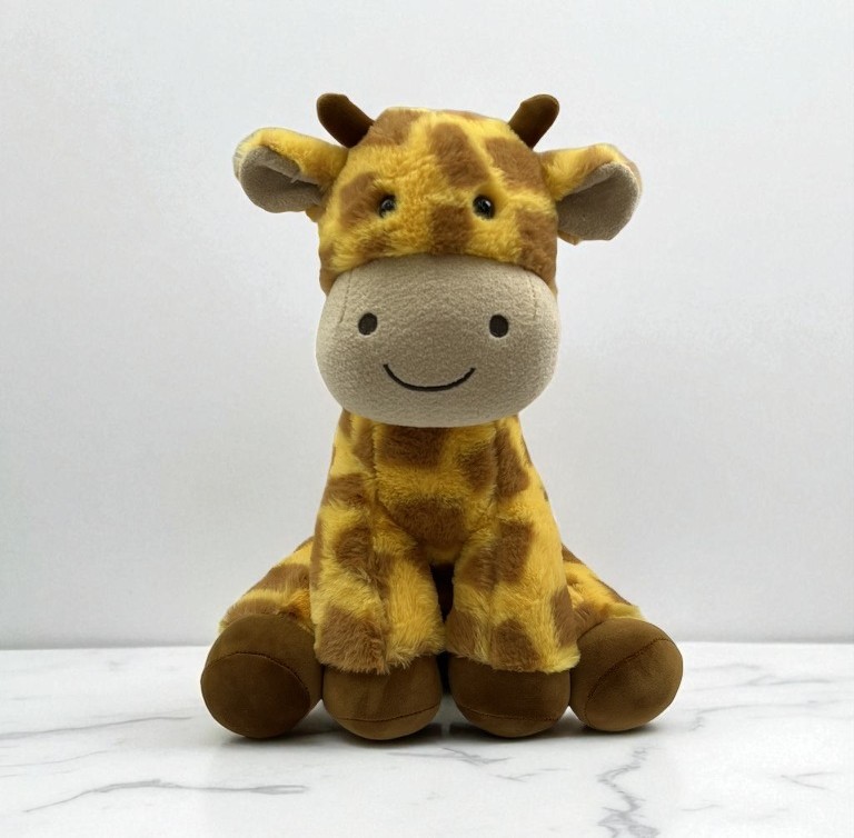 Un tierno peluche con diseño de jirafa, ideal para acompañar a los más pequeños en sus juegos y abrazos.