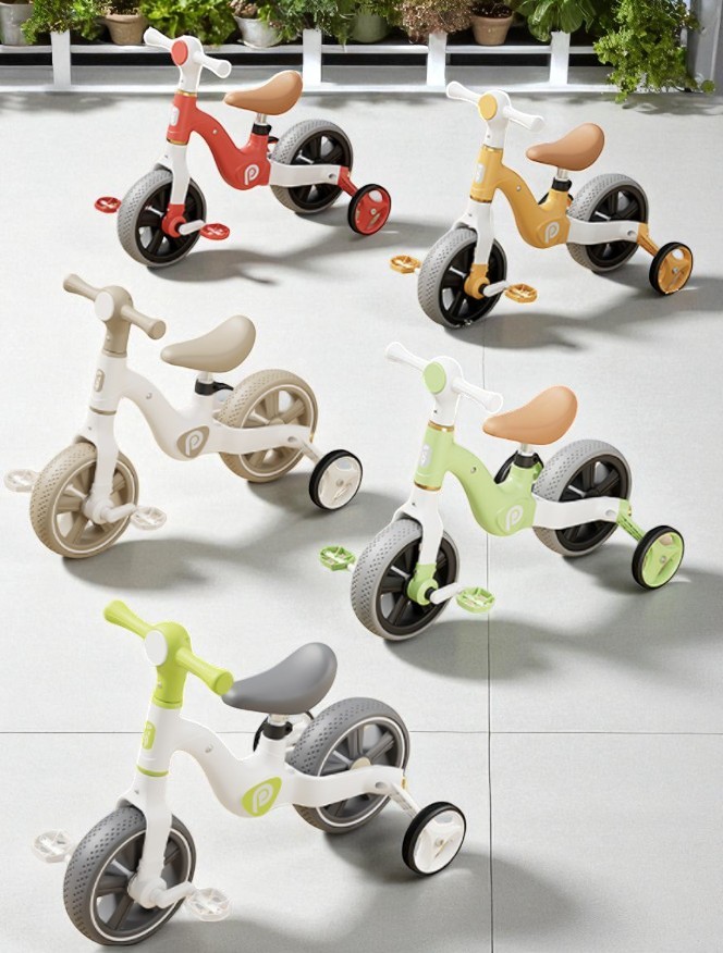 Una bicicleta que crece con tu hijo, combinando bicicleta de equilibrio y triciclo en un solo diseño. Ideal para desarrollar equilibrio y coordinación desde los primeros años.