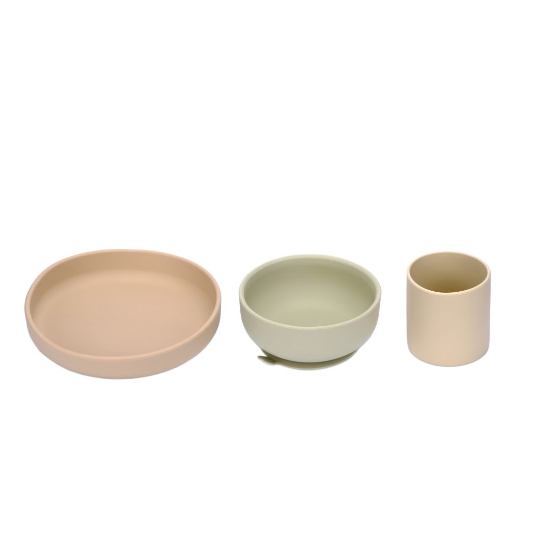 Incluye plato, bowl y vaso, diseñados para combinar funcionalidad, seguridad y estética.